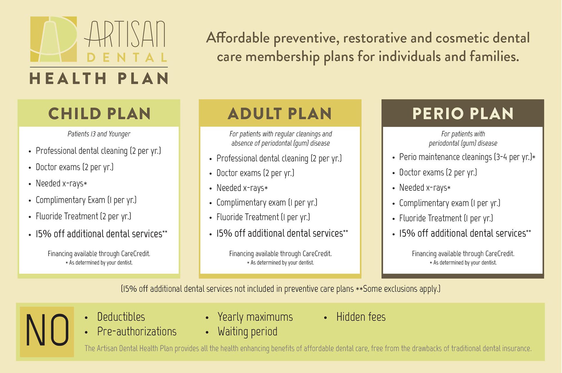 We feel fortunate to have received very appreciative patient feedback from our existing patients regarding their experience being cared for at Artisan Dental. We invite you to review their comments available on the Google, Yelp, Facebook, and Rate A Dentist review sites.